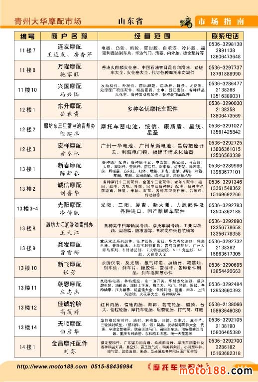 继2010年出版的《中国摩托车配件市场指南》系列丛书第一版本《华东市场指南》已经三年了,三年来华东市场是全国摩配市场变化最大的市场,以往的市场有的不复存在,有的搬迁形成新的市场,有的市场被部分改造,市场在缩小,如果仅从这些已经形成市场的角度来看华东市场规模在严重的收缩,刚开始我们打算编新版《华东市场指南》时,初步估似乎要减少不少单位,但等到汇总后,华东市场的总的经销商数目不仅没有减少,甚至比上一个版本还有所增加,总数有2800多家企业,因而书的内容比以前更充实,有不少以前不在市场上的企业,通过资料汇总,又经过逐户电话校对,这本书的准确率非常高,书中的信息都是2013年采集的。