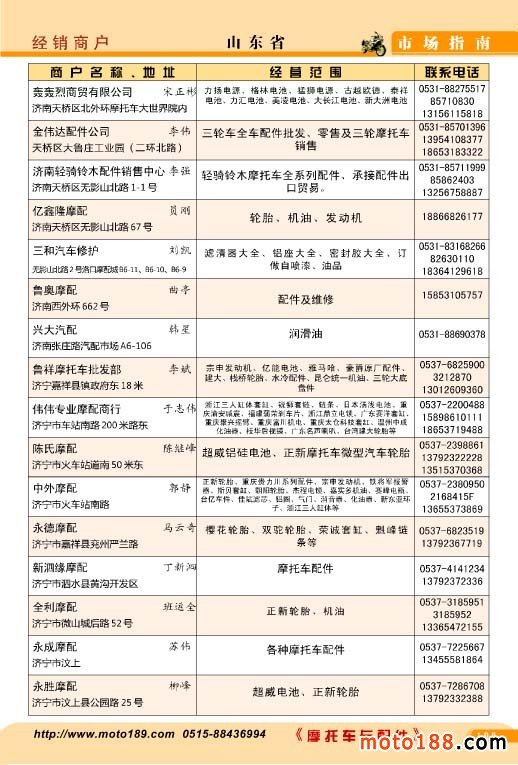继2010年出版的《中国摩托车配件市场指南》系列丛书第一版本《华东市场指南》已经三年了,三年来华东市场是全国摩配市场变化最大的市场,以往的市场有的不复存在,有的搬迁形成新的市场,有的市场被部分改造,市场在缩小,如果仅从这些已经形成市场的角度来看华东市场规模在严重的收缩,刚开始我们打算编新版《华东市场指南》时,初步估似乎要减少不少单位,但等到汇总后,华东市场的总的经销商数目不仅没有减少,甚至比上一个版本还有所增加,总数有2800多家企业,因而书的内容比以前更充实,有不少以前不在市场上的企业,通过资料汇总,又经过逐户电话校对,这本书的准确率非常高,书中的信息都是2013年采集的。