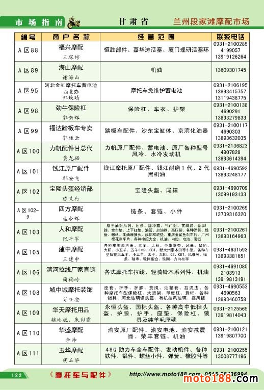 这本书在采集信息的同时,也把我们的杂志扩散至市场的每一个角落,目前全国所有的配件,不管是生产还是经销企业,都藏有我们的劳动成果,目前《名录》内数据库资料书和我们的杂志一样,是我们这一个平台的最好的品牌,我们不仅将书送至市场的每一个角落,我们的网站也同步将我们的杂志和我们的数据库在http://:moto188.com展示,目前通过网站浏览者,不仅在国内,在世界各地都有访问者,也将我们杂志和书二个行业品牌做到极至,即使这样我们也不能固步自封,争取收集更广更详的信息给业内经营和生产厂商。
